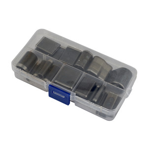 Набор круглых высечек разных диаметров. Набор выполнен в виде штанцформ различного диаметра и предназначен для вырубки отверстий в коже, картоне и прочих похожих материалах.