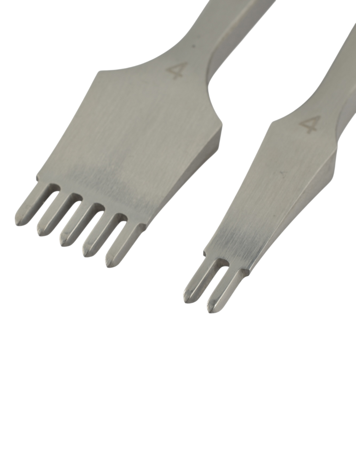 Набор строчных, ромбовидных пробойников LC из инструментальной стали с полированными зубьями. Используя данные пробойники вы сможете сшивать ваши изделия из кожи ровным и аккуратным швом. Отличие от версии LC 2+6 в том, что версия 2+5 имеет более толстые рукоятки.