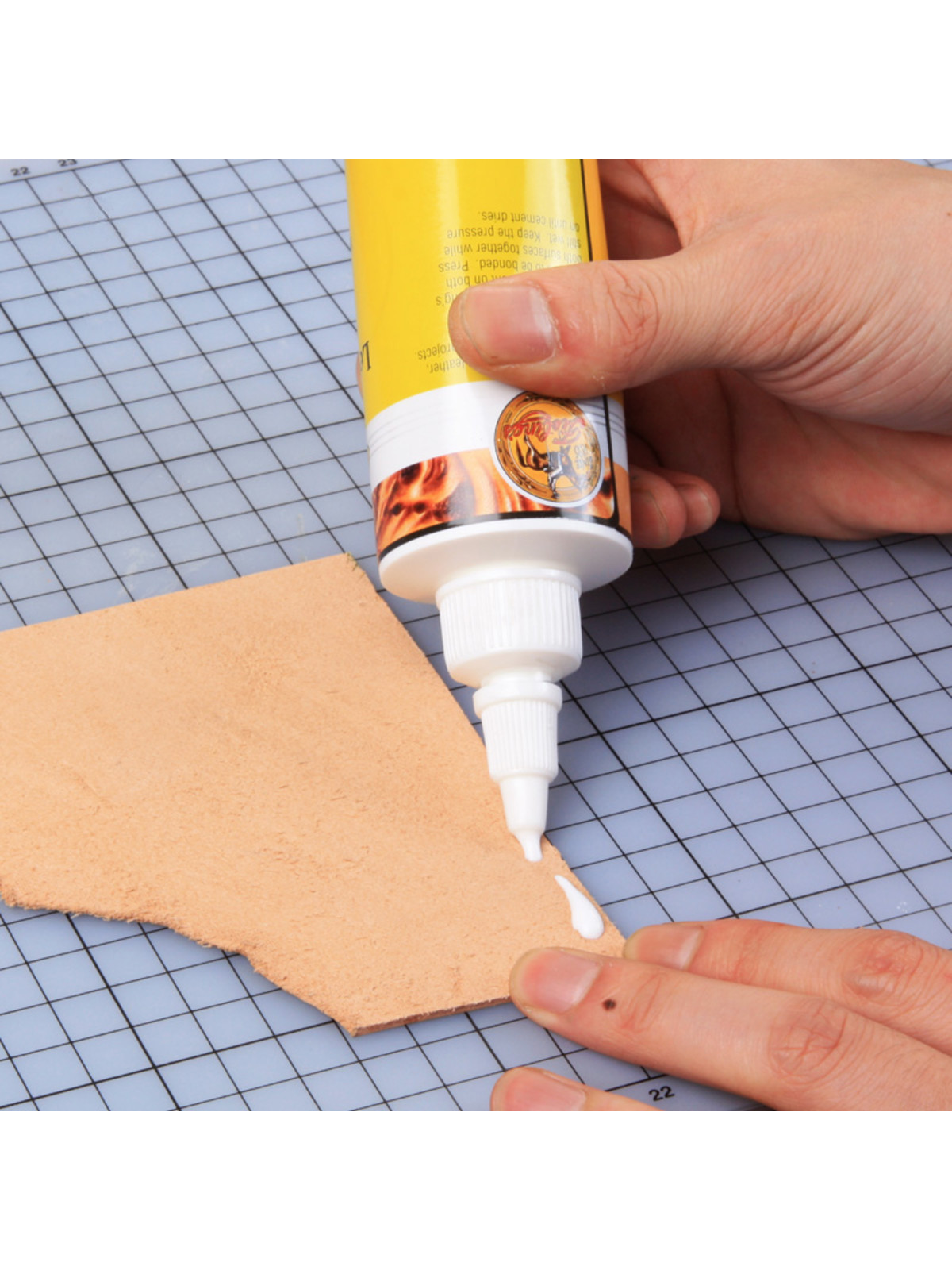 Прочный клей на водной основе Fiebing's Leathercraft Cement используется для склеивания кожи, тканей, бумаги или картона. Удобен при склеивании кожи перед прошивкой или приклеивании подклада, тк обладает эластичными свойствами.