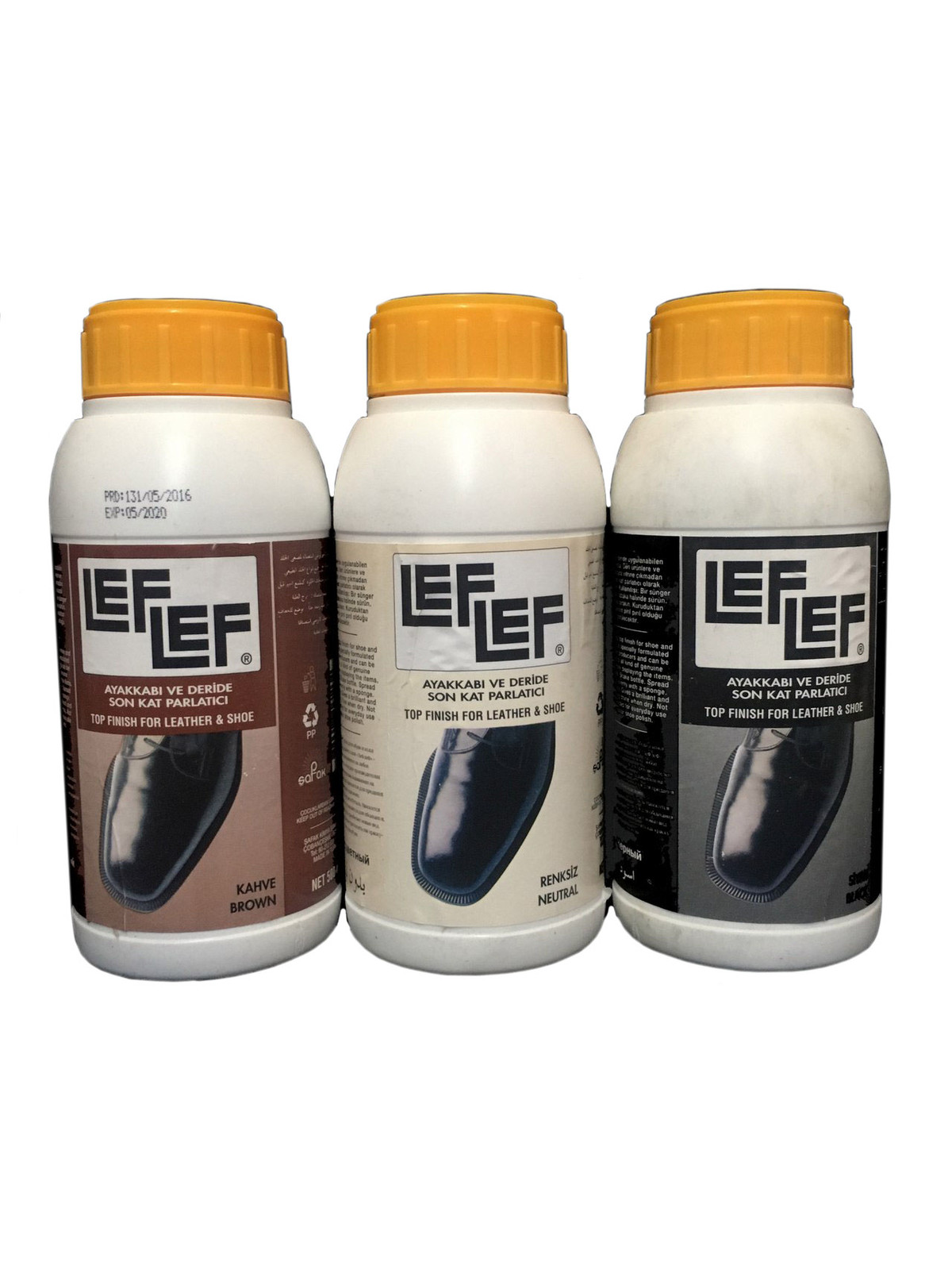 Lef-Lef это защитный лак (аппретура) для любых видов кож и обуви из кожи. Создает гибкое, стойкое к воде и истиранию покрытие, которое защищает кожу, не изменяя ее мягкости. Наносится с помощью мягкой ткани, кисточки, дауберов или аэрографа. Коричневый и черный цвет выполняют также функцию краски. Влагостойкий.
