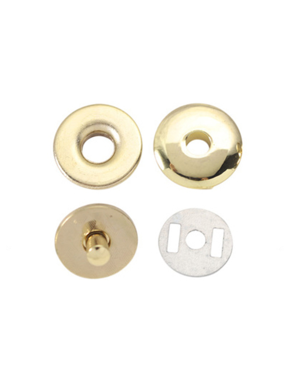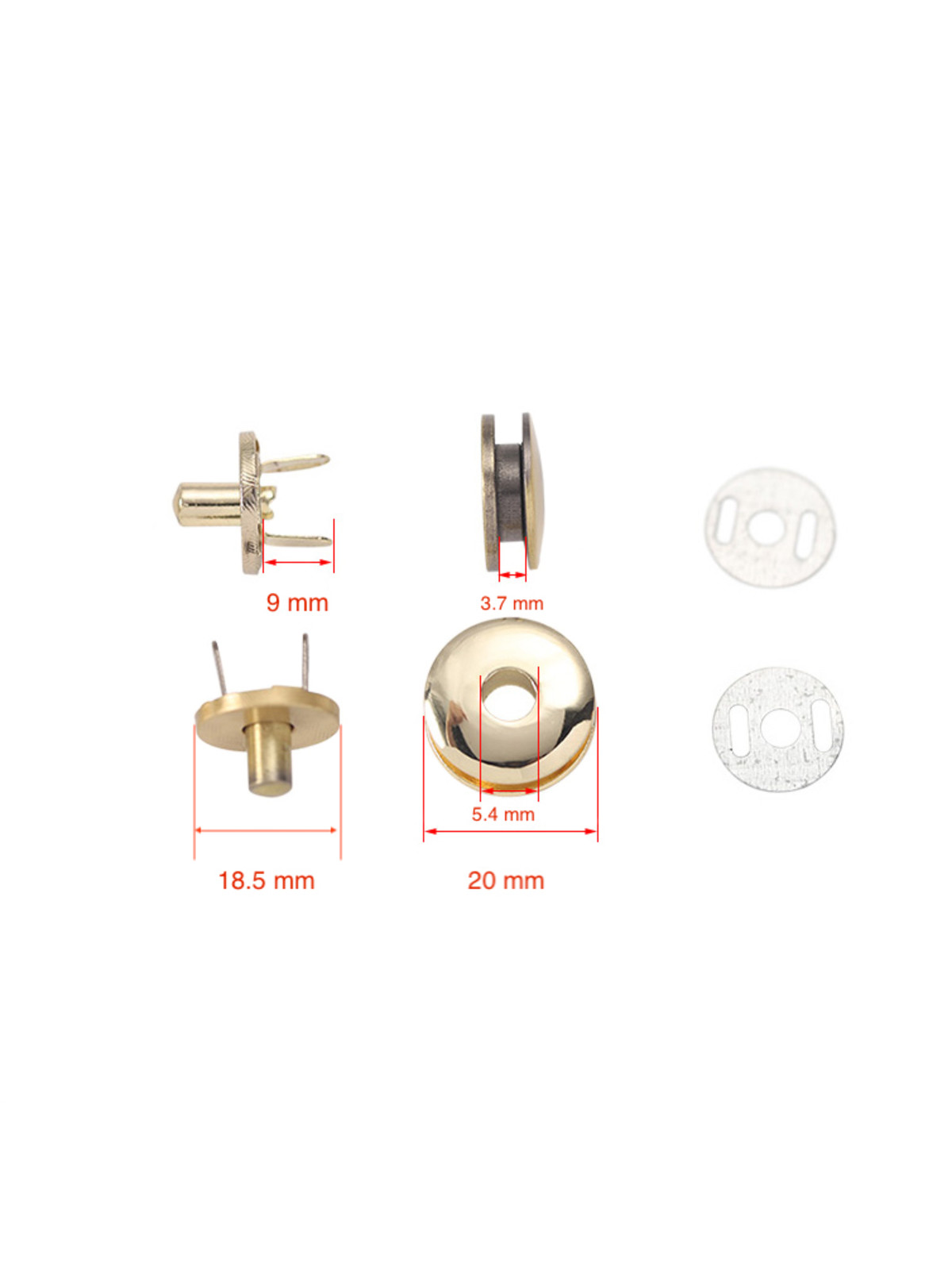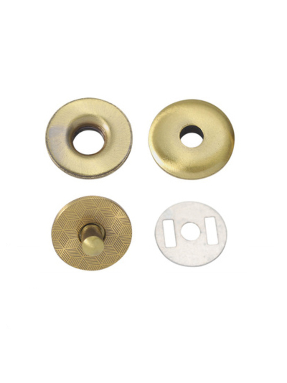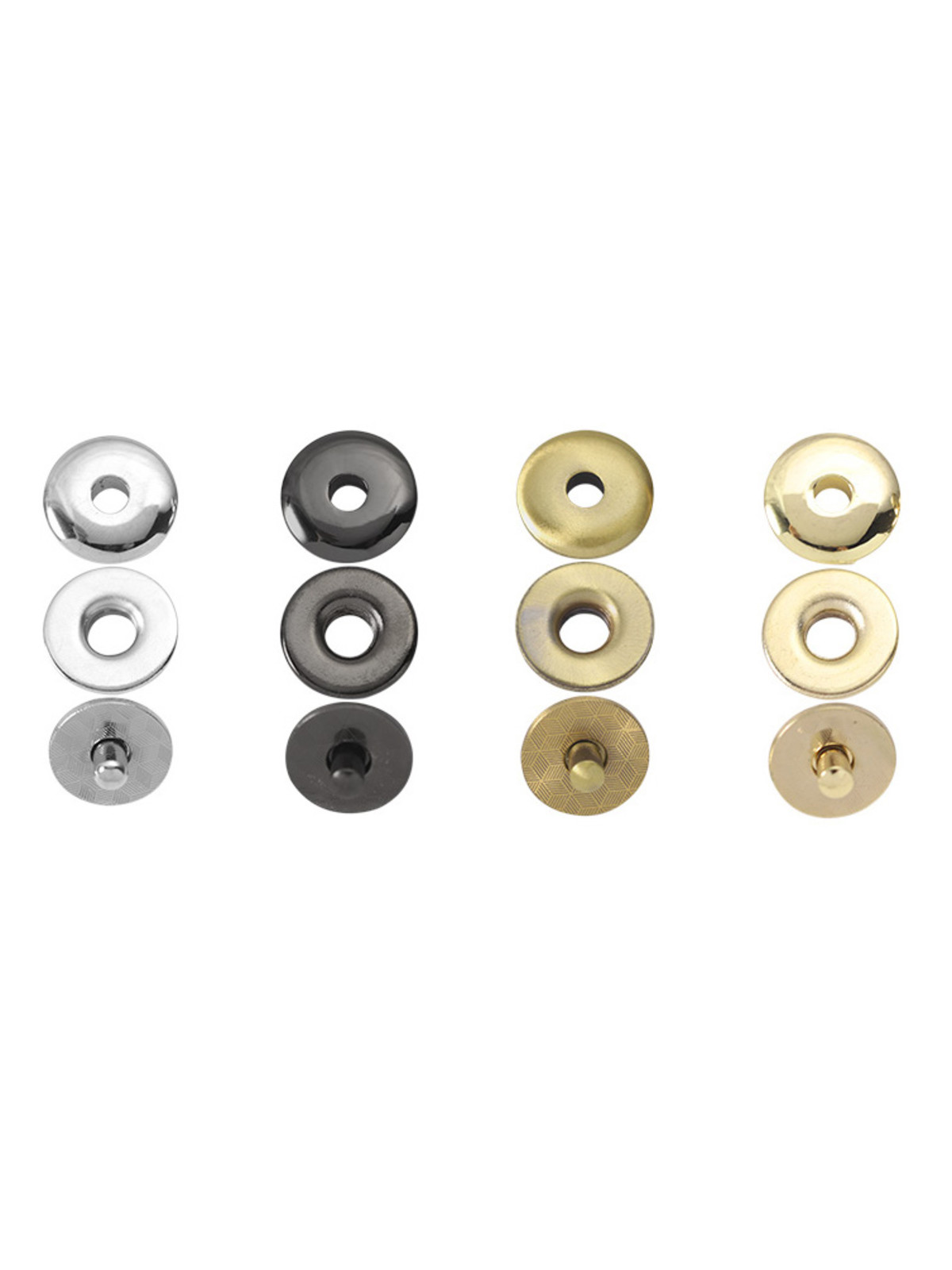 Кнопка магнитная Wuta с ножкой на ответной части, используется при изготовлении изделий из кожи: сумок, клатчей или кошельков. Ножка-шип позволяет надежно зафиксировать закрывающийся клапан и без особых усилий центруется при его закрытии.