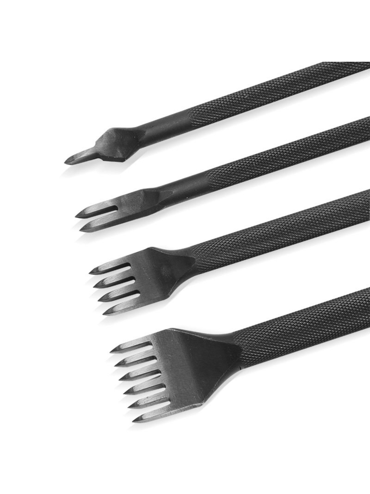 В комплекте идут 4 пробойника с количеством зубьев 1, 2, 4 и 6.