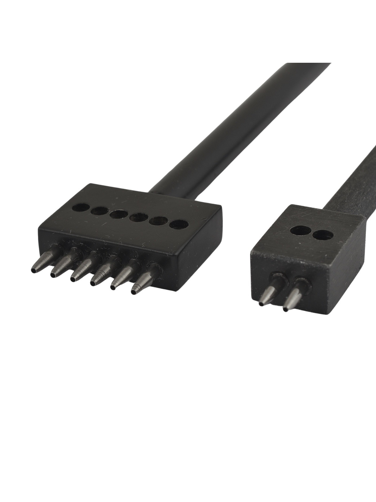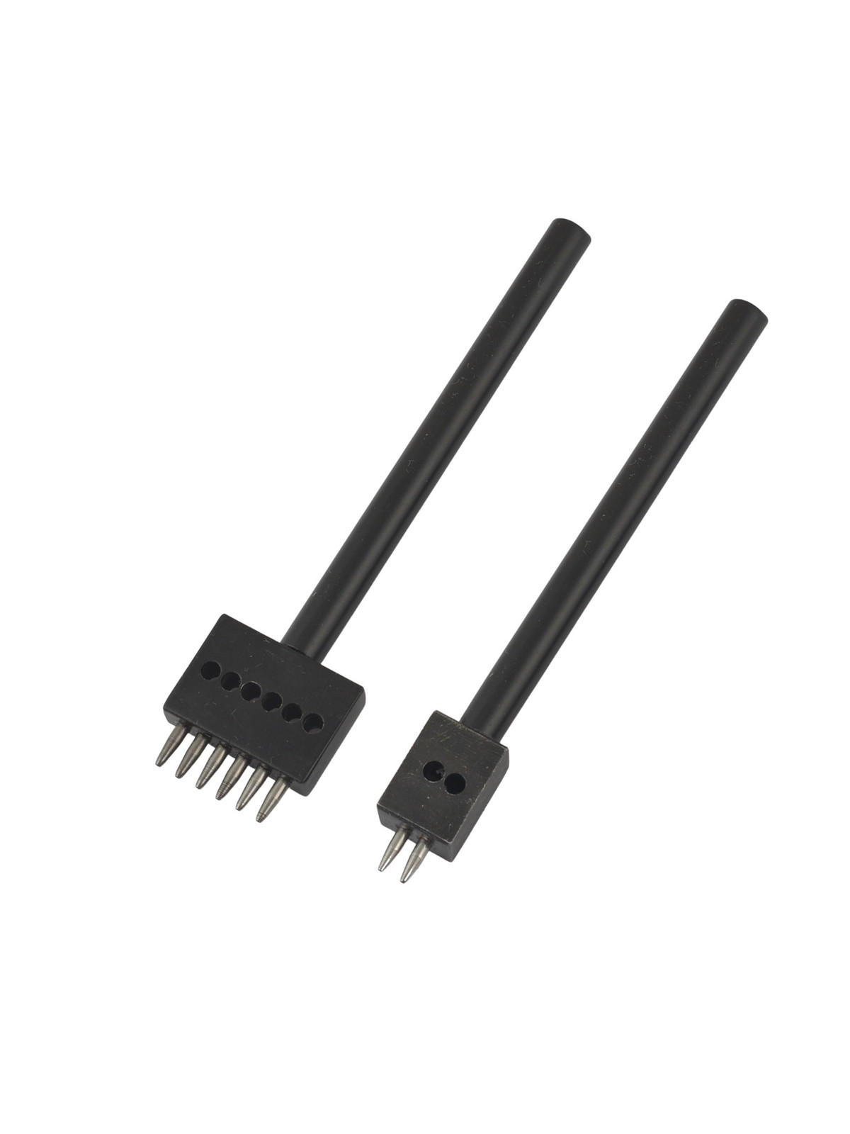 В комплекте идут два пробойника с количеством зубьев 2 и 6. Обратите внимание: Пробойники могут идти черного или стального цвета (в зависимости от партии), различий между ними по качеству нет.