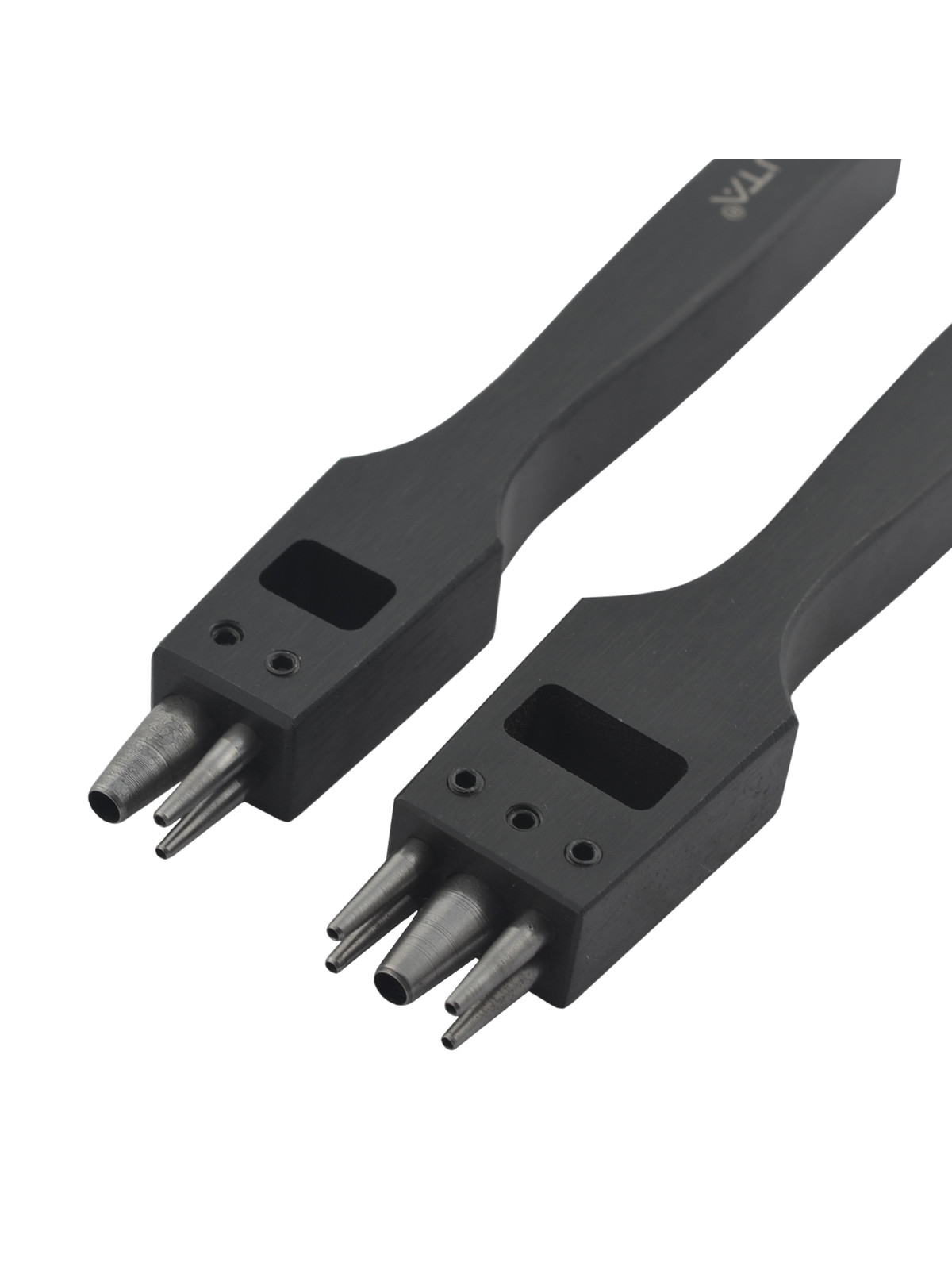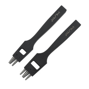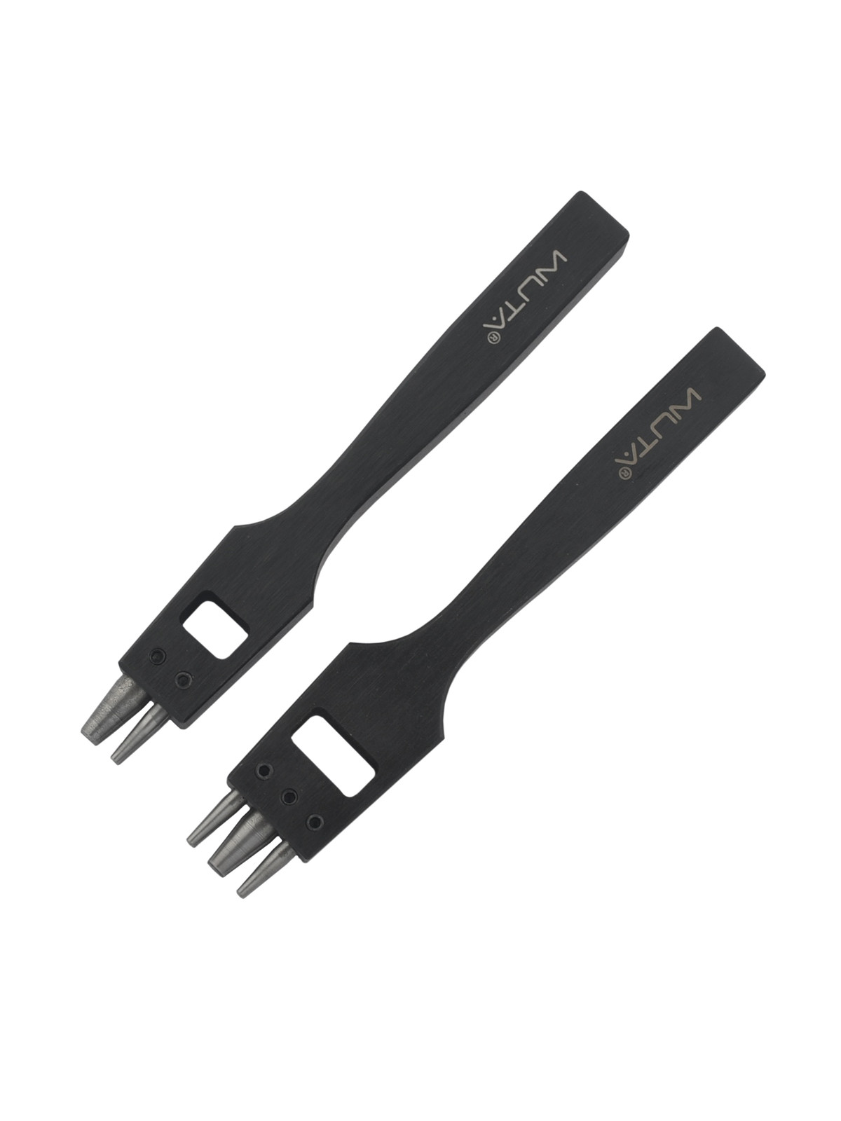 Комплект пробойников Wuta для брогирования, состоящий из двух пробойников на 3 и 5 зубьев. Брогирование - процесс создания декоративной перфорации на обуви или галантерейных изделиях, что придает индивидуальность и красивый внешний вид.