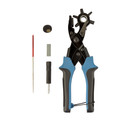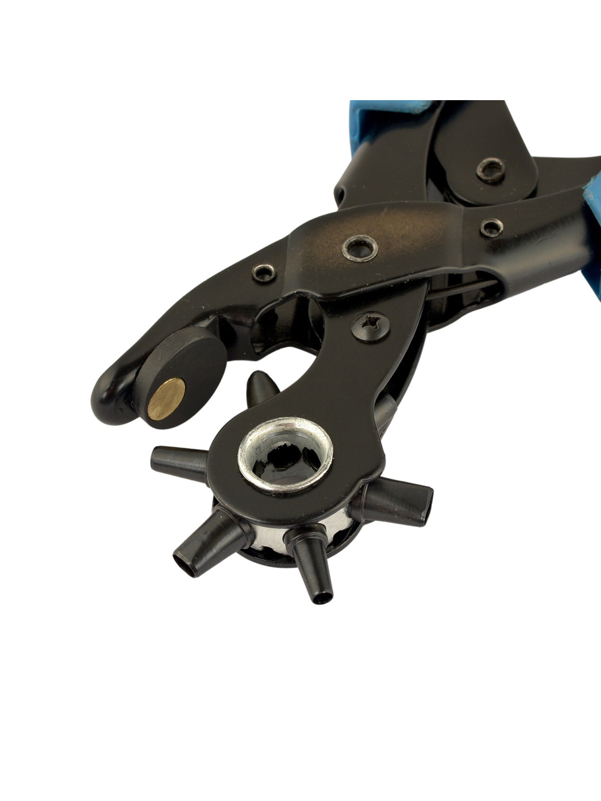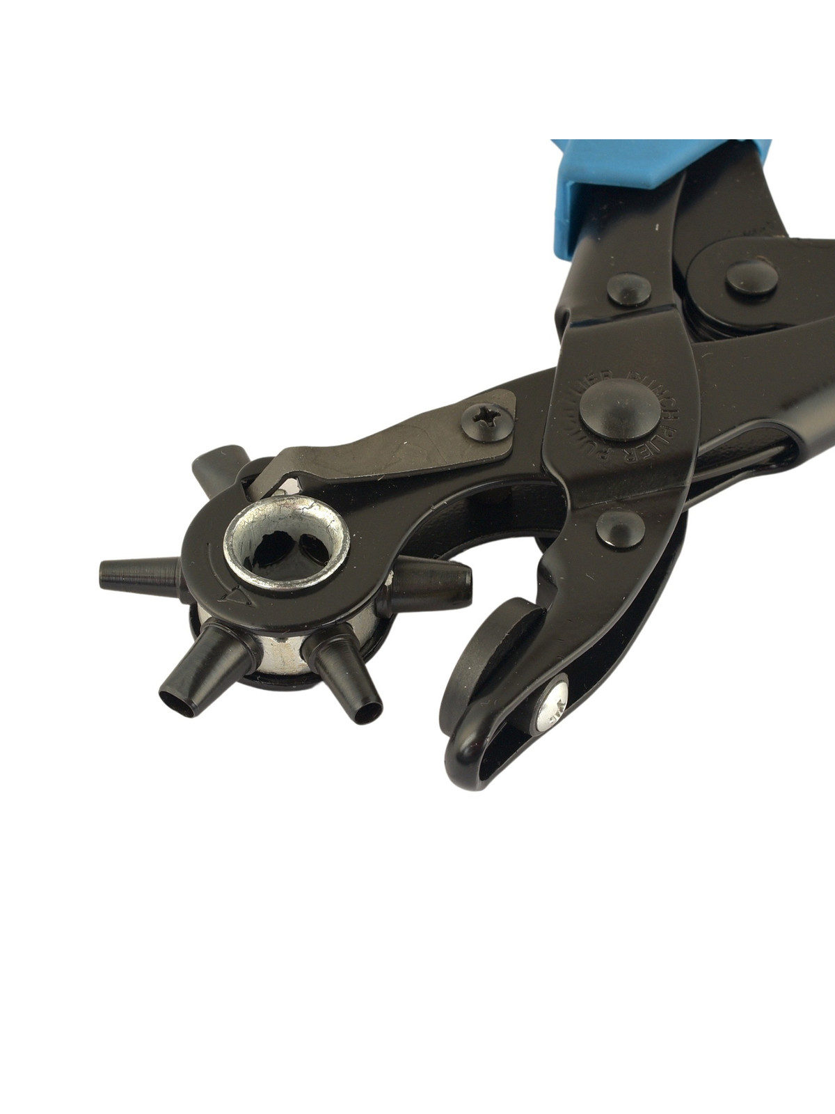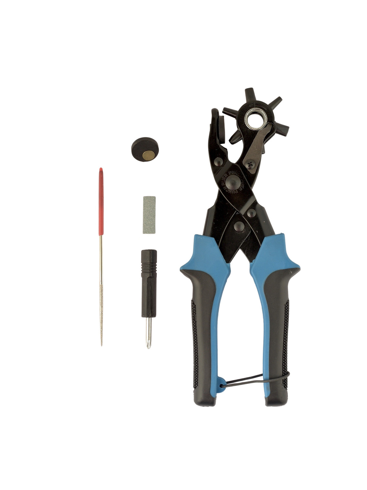 С помощью удобной, удлиненной рукоятки и острой кромки пробойников, вы сможете без особого труда делать отверстия даже в толстой коже. В комплекте идет: пробойник, отвёртка, брусок и алмазный надфиль для правки, запасная площадка под пробойник.