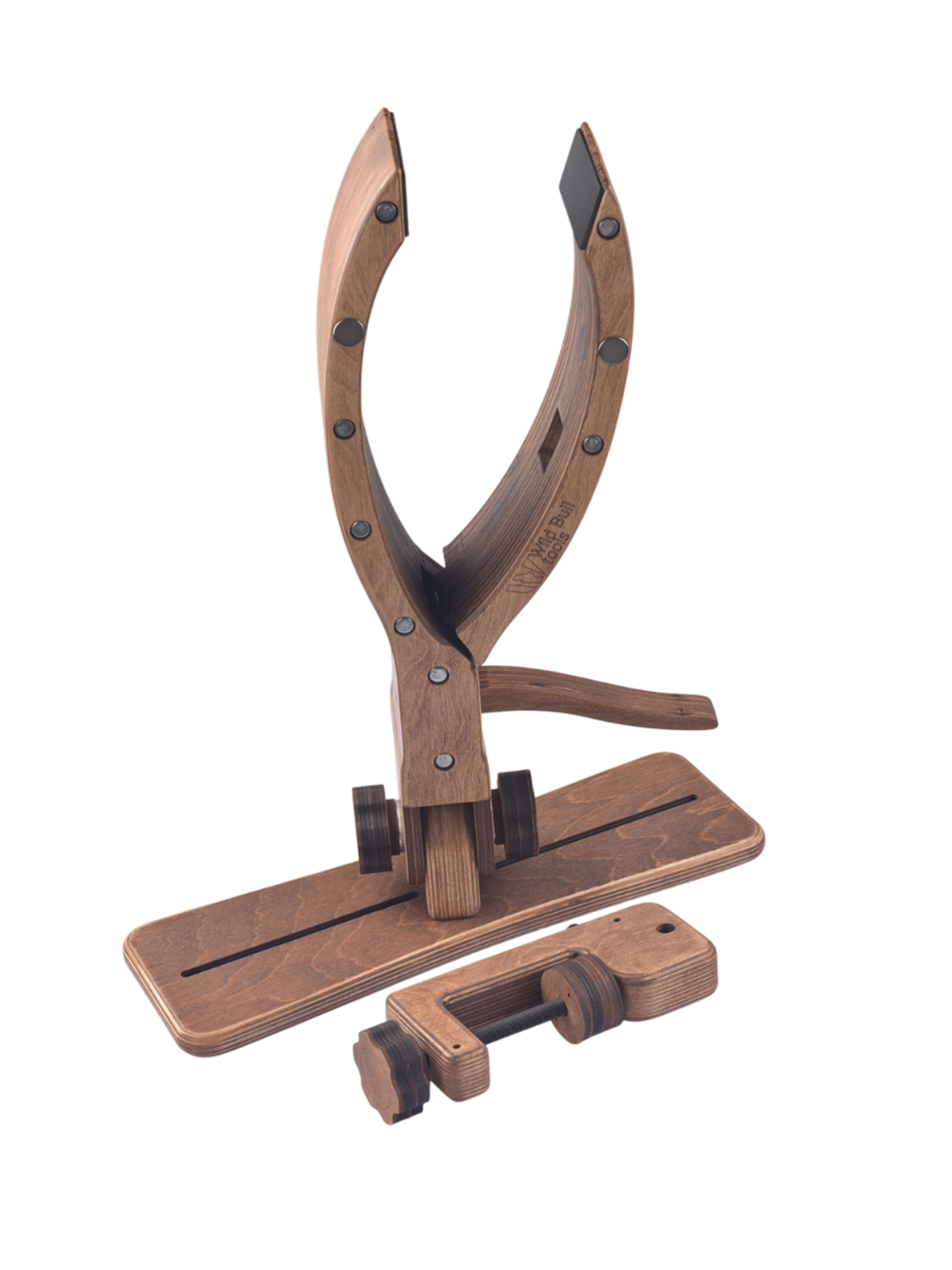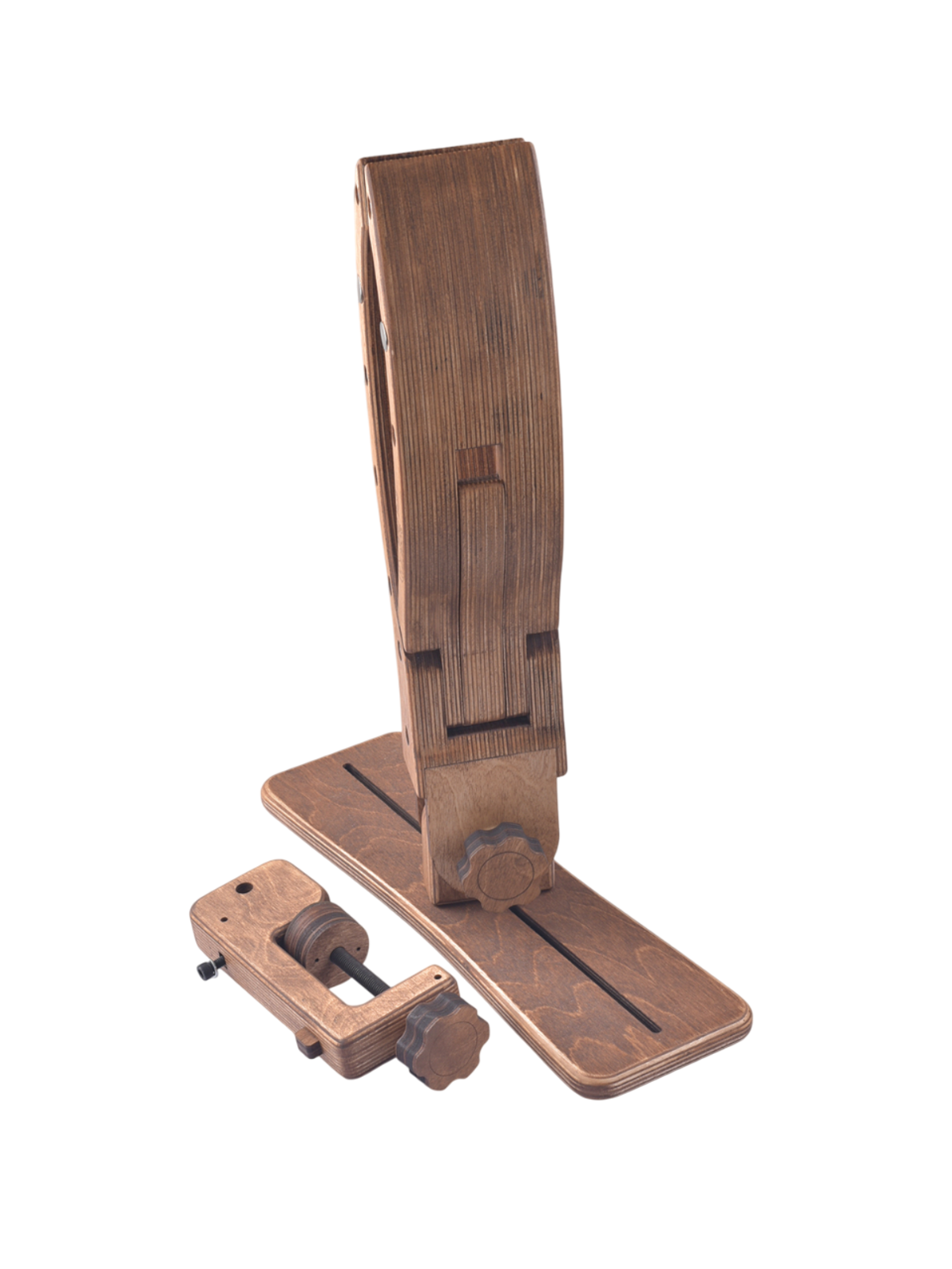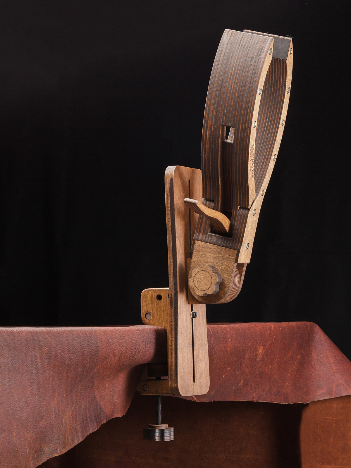 Универсальный шорник-трансформер "Аркан", с быстрозажимным механизмом, предназначен для ручного шитья изделий из кожи, седельным швом. Позволяет быстро и надёжно зажимать изделие при шитье, освобождая при этом руки. Можно использовать вместе со струбциной и закрепить его на столе, можно использовать с подставкой как классические шорники.