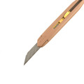 Очень удобный макетный нож Oulefa Carver 3658 применяется для точных и общих работ по резке кожи и прочих материалов, связанных с творчеством или строительством (картон, обои, ткань и т.п.). Тонкая форма корпуса на конце, позволяет держать его как ручку при выполнении точных и мелких работ.