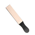 Точильная стропа Wuta, для правки лезвий поворотного ножа или другого инструмента. Стропа позволяет всегда держать ваш инструмент острым, что напрямую влияет на результат вашей работы. Рукоятка из бука, с наклеенной, с обоих сторон, кожей растительного дубления, на которую наносится предварительно ювелирная паста или паста ГОИ.