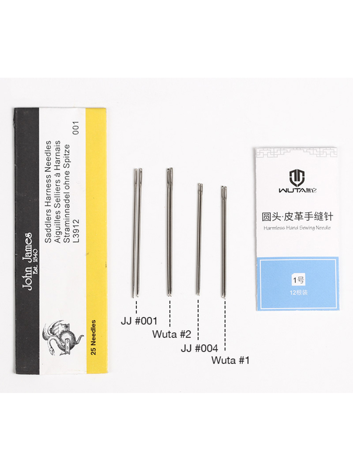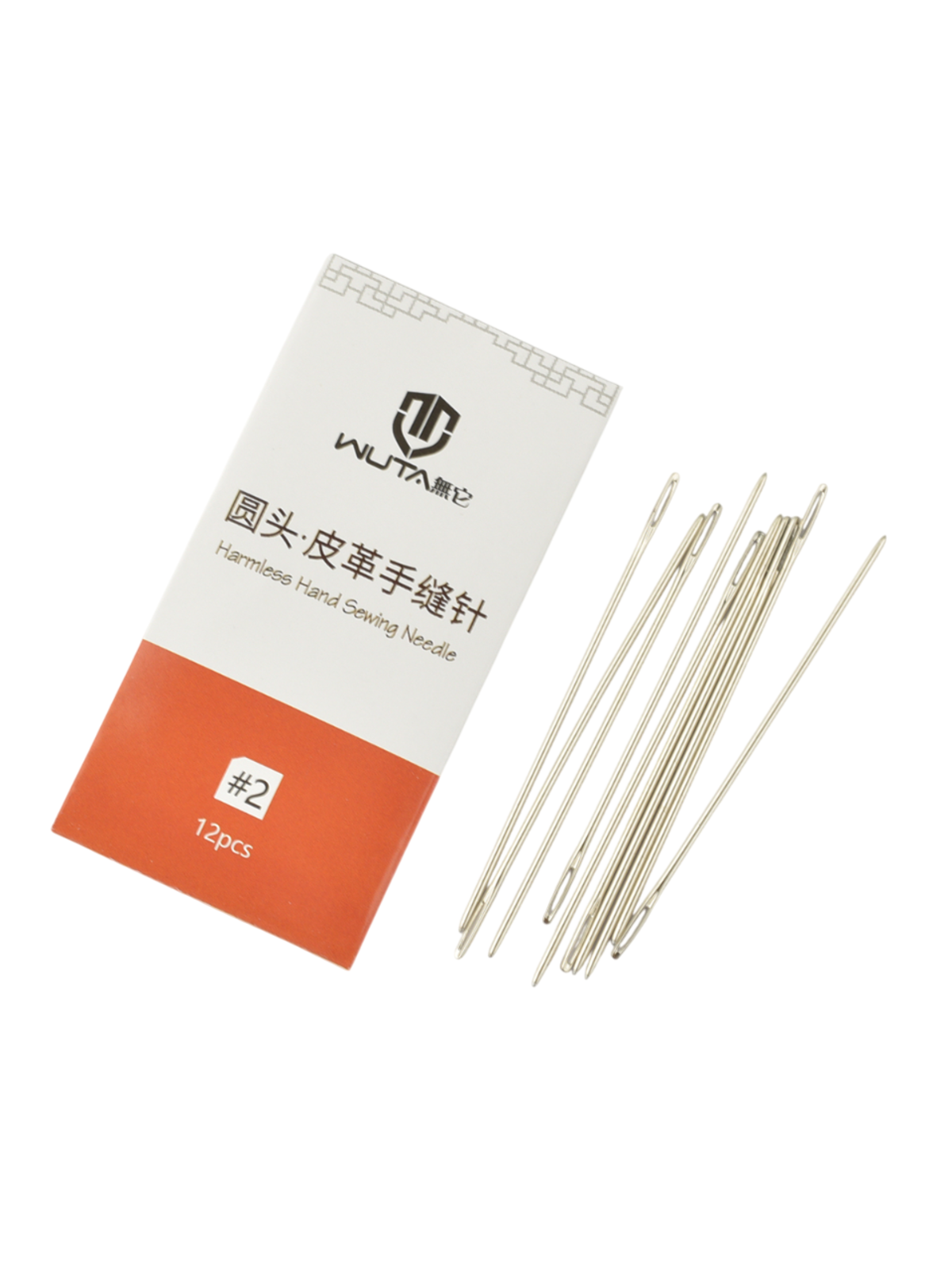 Иглы Wuta (Вута) №2 с закругленным концом, специально предназначенная для ручного шитья кожи, а также ремонта и изготовления кожаных изделий. Изготовлены из нержавеющей, прочной стали с высокой твердостью и хорошей ударной вязкостью. Полированная поверхность и слегка увеличенное ушко, овальной формы - позволяет легко вставлять нитки, используемые кожевниками.