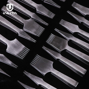 Высококачественный комплект пробойников для кожи от Wuta из инструментальной стали, с полированными зубьями. Такие пробойники европейского (французского) типа, бывают двух видов: прямые (лицевая сторона) и обратные (изнаночная сторона).