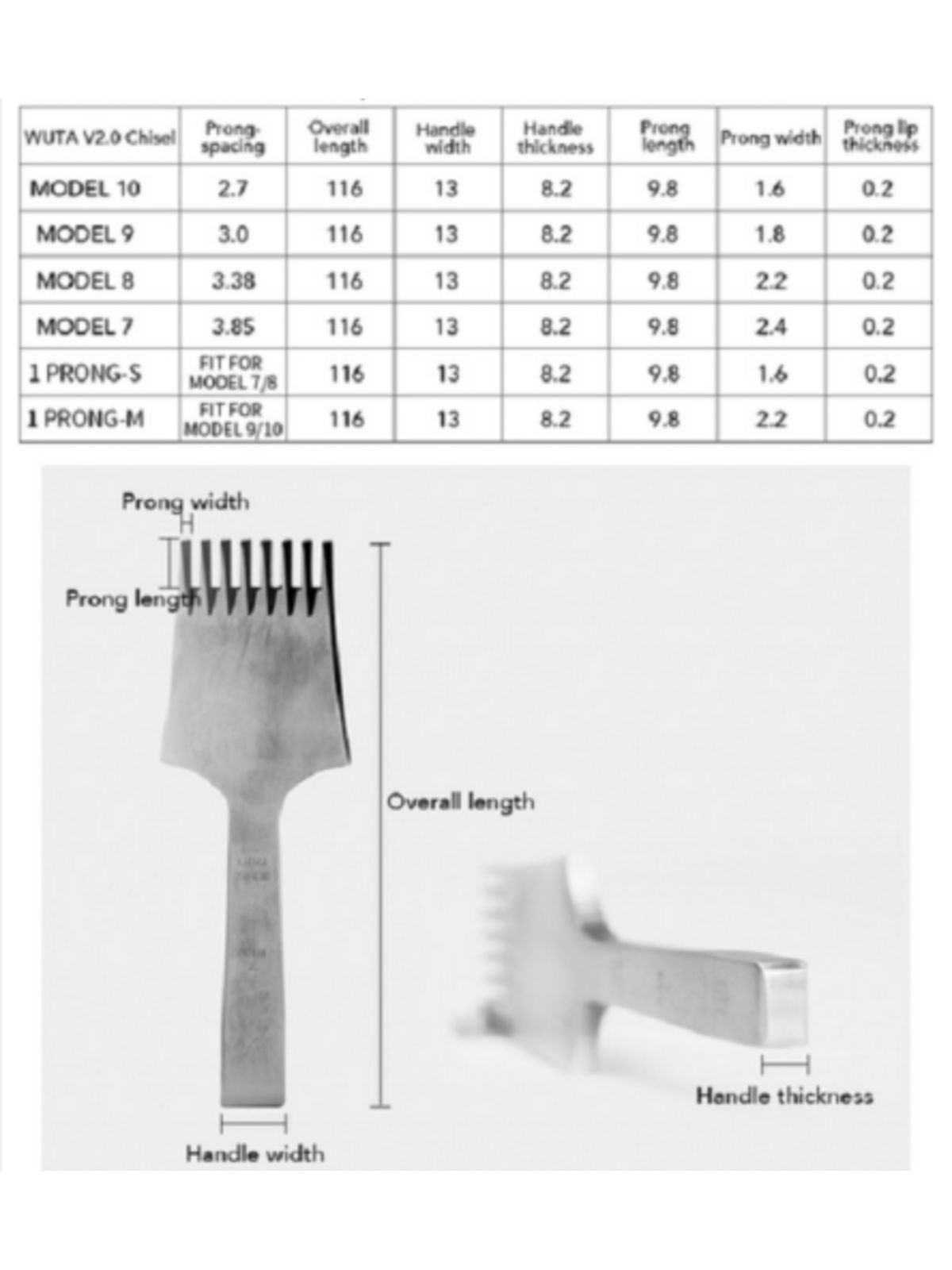 Пробойники второго поколения (типа) характеризуются более толстой рукояткой и отсутствием границы с краев по высоте зубьев, что позволяет работать с более толстой кожей.