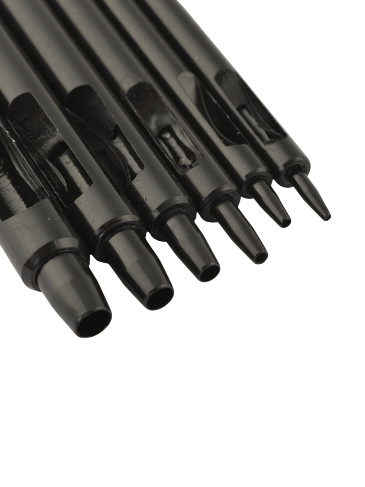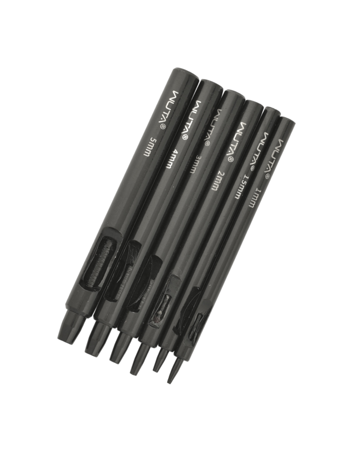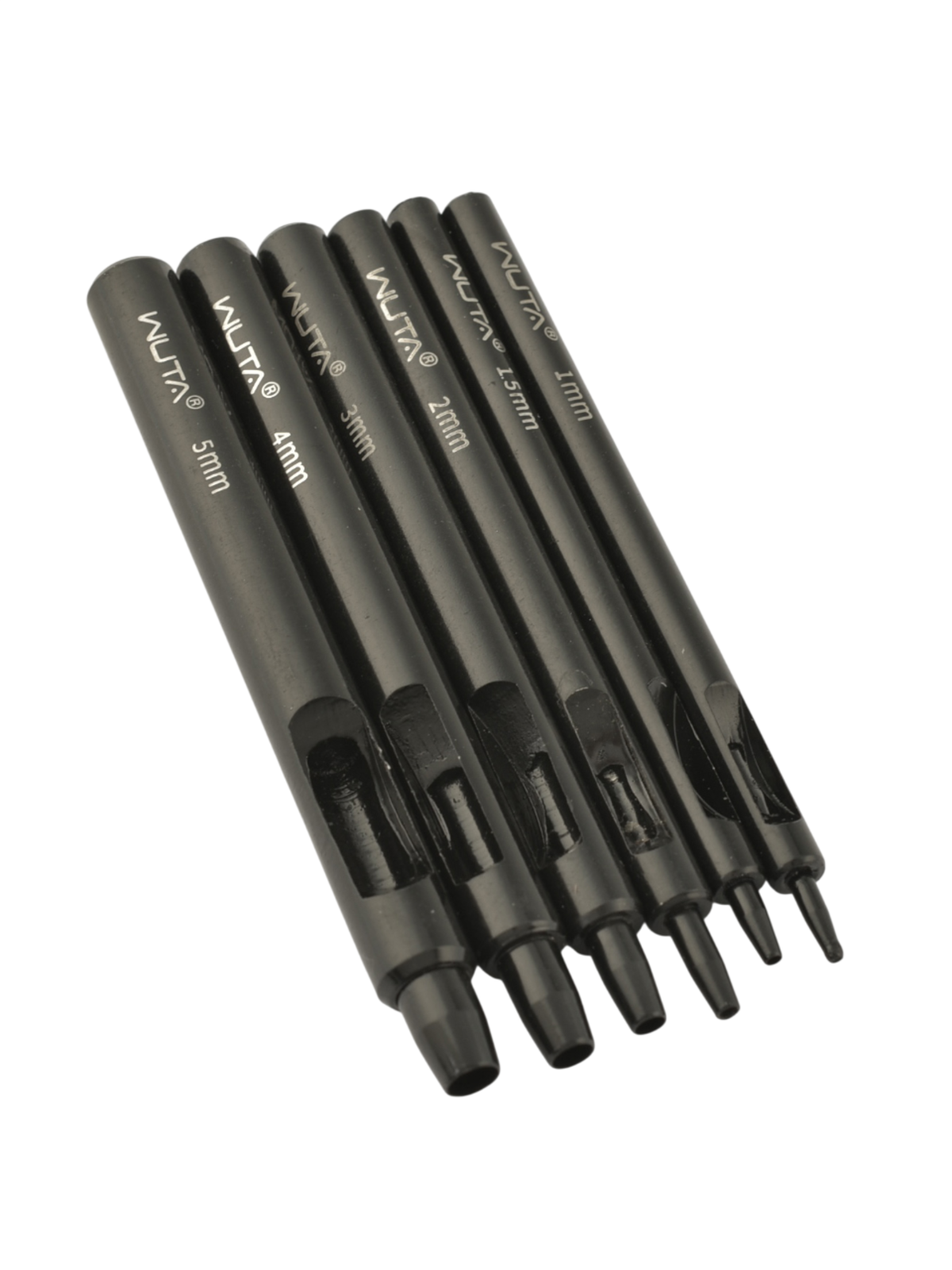 Набор качественных, круглых пробойников-высечек от Wuta, изготовленных из инструментальной стали. Пробойники имеют покрытие чёрного цвета для защиты от корозии.