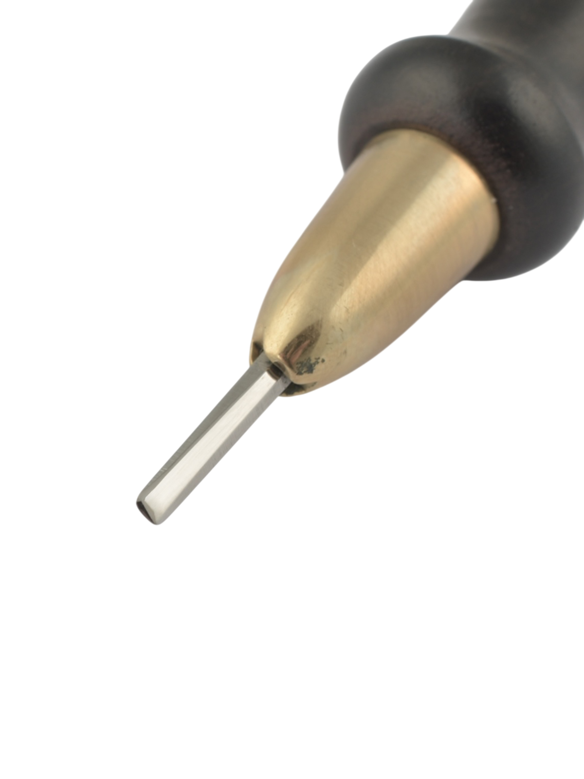 Шило Zengda специально разработано для работы с французскими пробойниками размером от 2,7 до 4,5 мм. Изготовлено из инструментальной стали и имеет рукоятку из чёрного дерева.